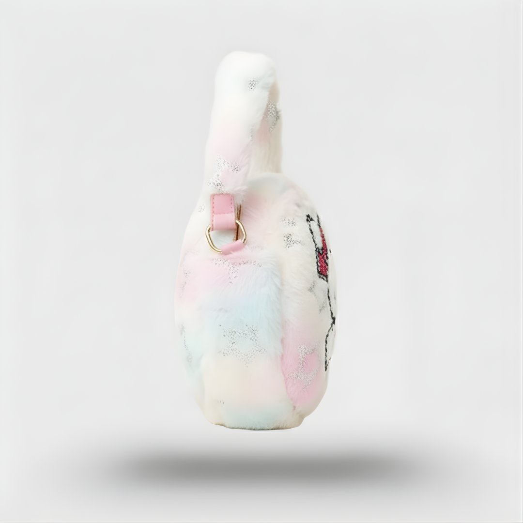 Let your little one carry a touch of cuteness wherever she goes with this adorable bunny plush round handbag! Designed with pastel-colored soft fur and a sweet embroidered bunny pattern, it combines playfulness with fashion.